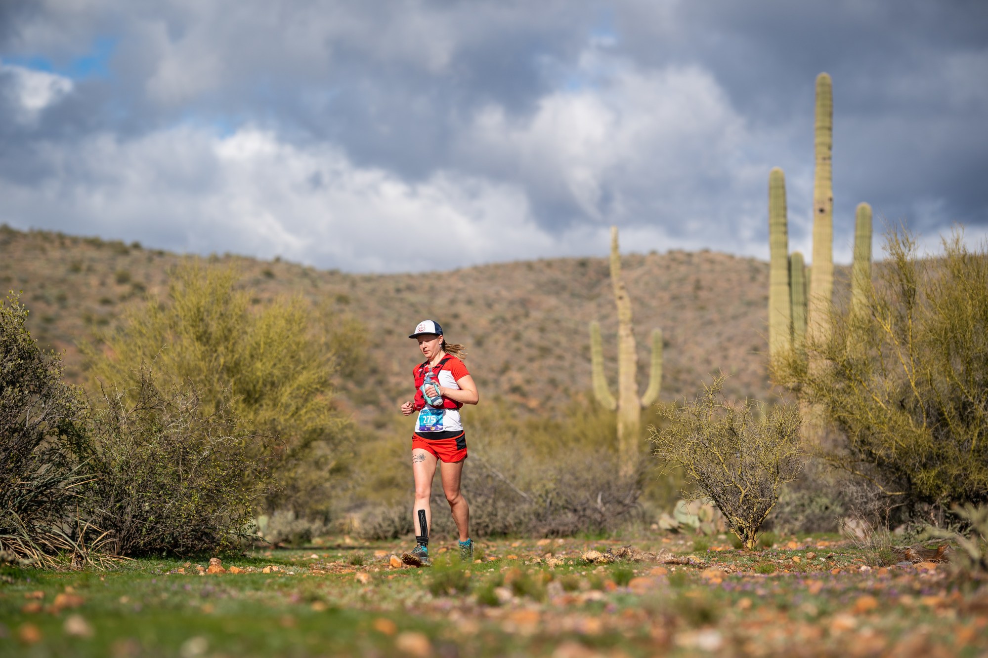 f twisting and contorting my feet to navigate over the rocky trail; I realized how much more painful it was than all of the flat, manicured terrain I had been covering. This “run” flooded me with panic and the tears, hidden beneath my sunnies, burned my eyes as I hobbled back to the trailhead. I muttered to Dustin that I didn’t think I should run the next day. But every time I had this thought it was overruled by how long I had looked forward to this race, the money I had spent to sign up and fly down, the time I had booked off of work, how much patience it would take to wait another year, all the extra carbs I had shoved down my throat the week leading up to the race. The angel on my shoulder said to sit it out, spend the day crewing and cheering my friends on. The devil said to go and run the shit out of that desert.