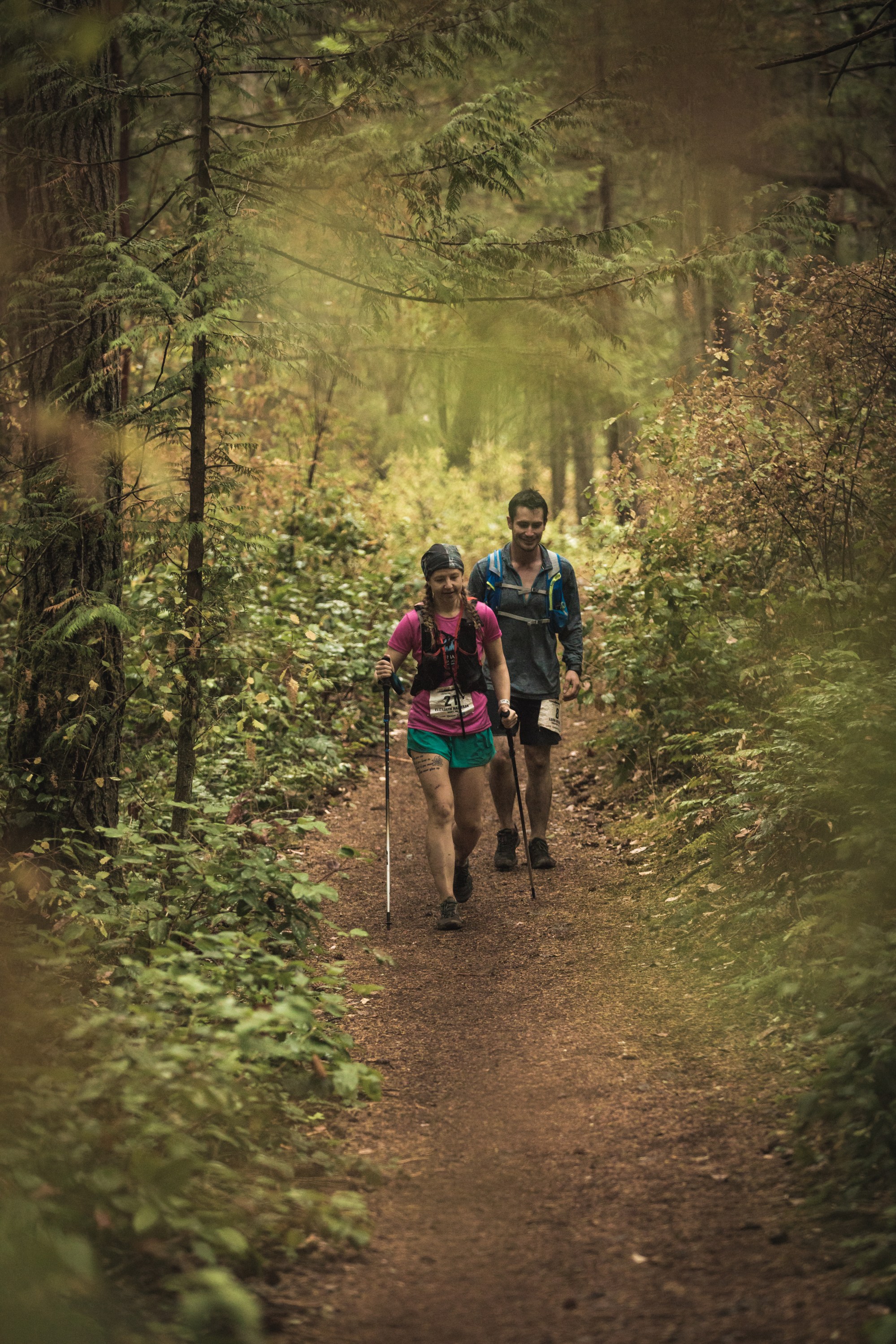 The mystery of the poles remains unknown. Andy (my partner) at this point, spent the summer hearing about how long runs were affecting me, how I recovered, how I was so excited to be running a sub 6 min KM (I know for all the big wigs, that’s nothing, but for me, its huge!) I arrived at KM 40 to Andy holding new Black Diamond poles! (He had also heard about my nightmares about losing poles, so he knew how impactful this could be for the race) Off, I went with my poles and belly slowly filling with more gels! I called this race “the staircase of rocks”, as each section quickly reminded me “you ain’t in the Canadian Rockies” I felt like my feet were fumbling over the net of roots and rocks that laid perfectly for you to leap down. Leaping was not my strategy, I took the more careful soft approach with small steps. Was I even running?